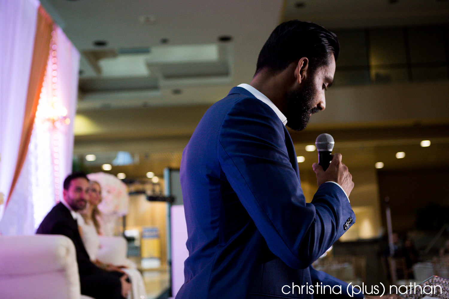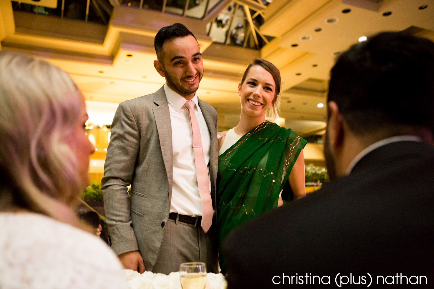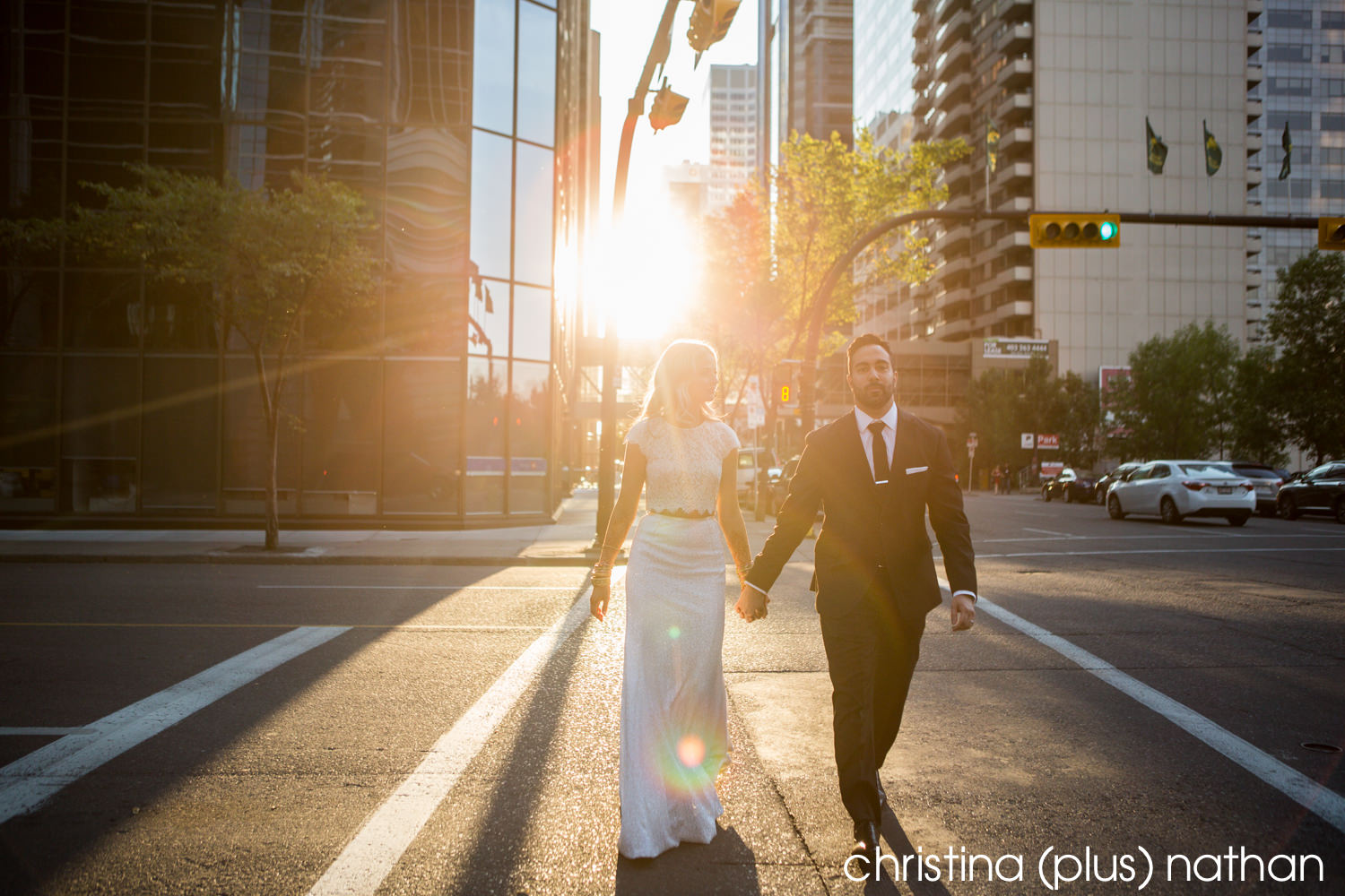This wedding ceremony took place at the Sikh Society of Calgary, and reception in the lobby of the Sunlife Plaza catered by the Royal India restaurant.