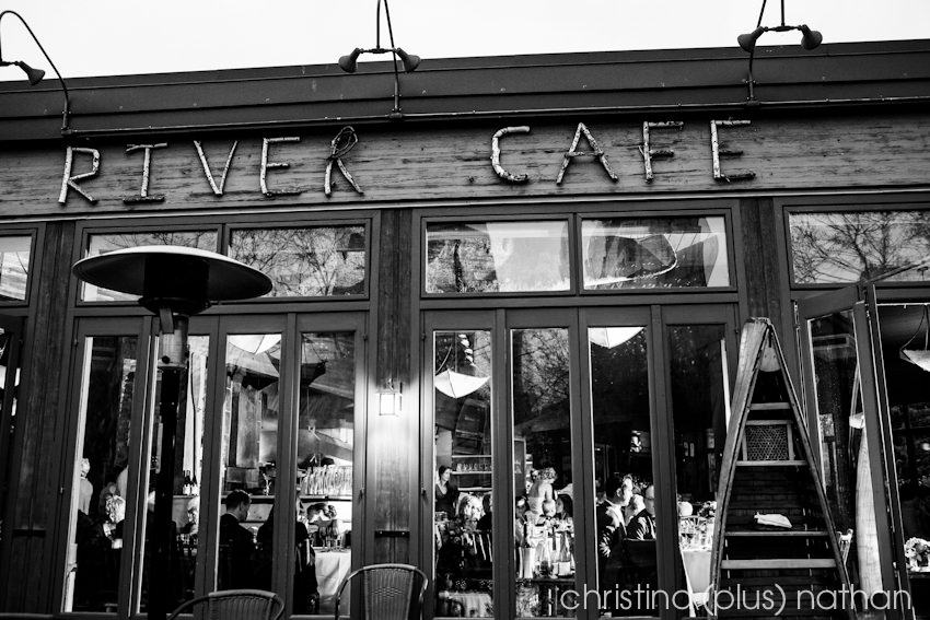 Black and White River Cafe wedding photos