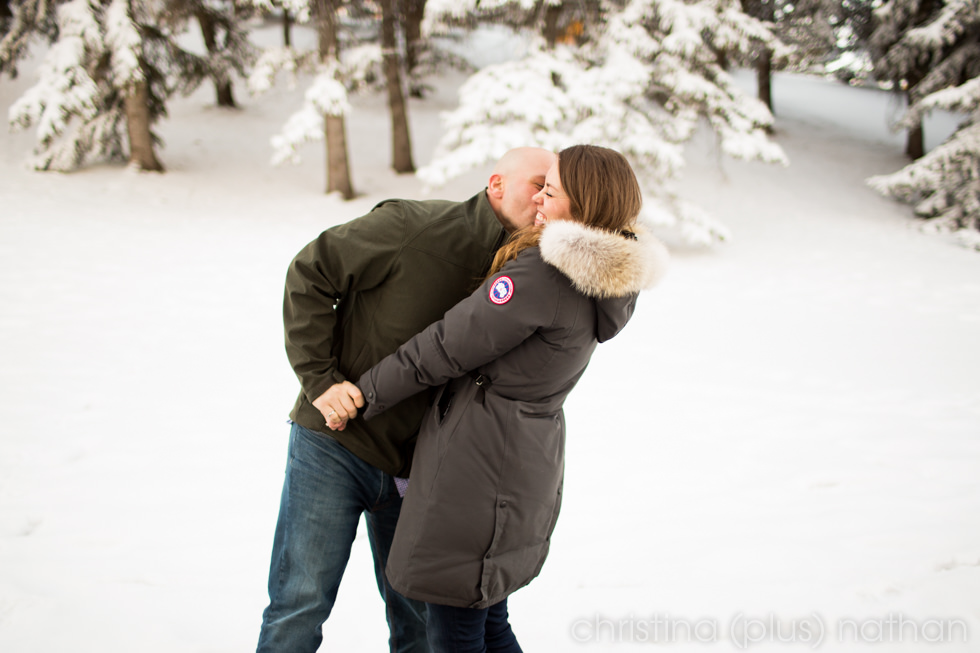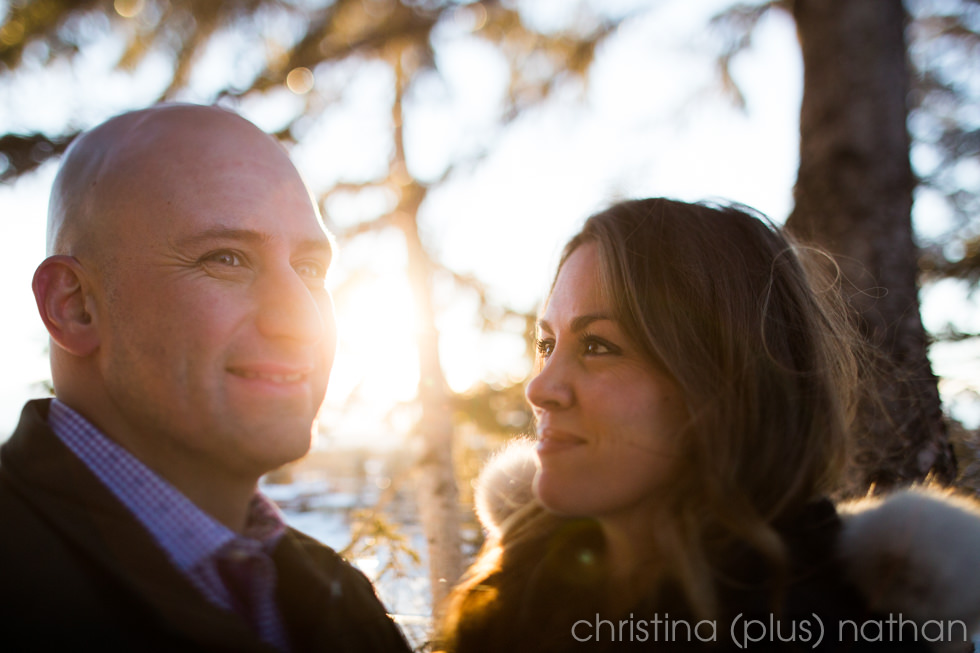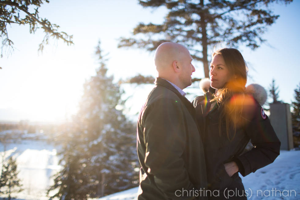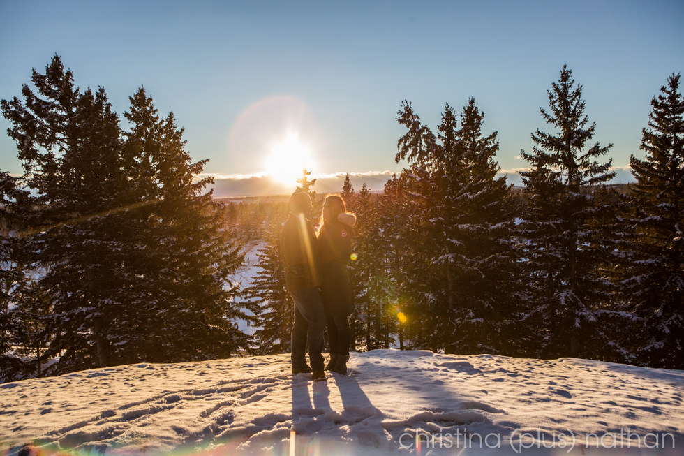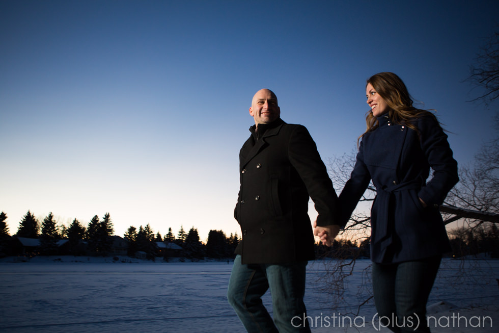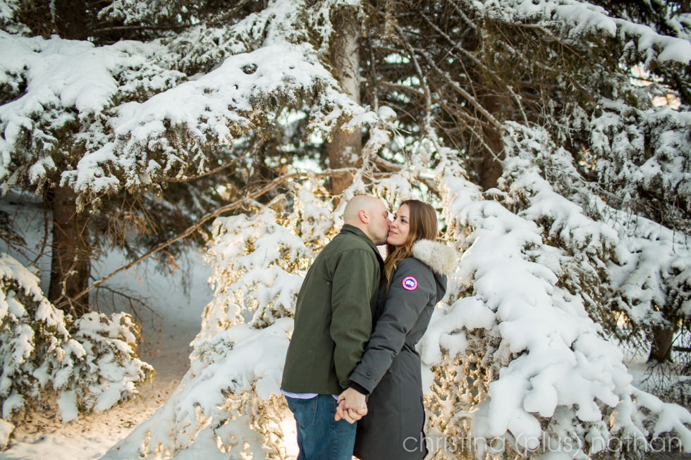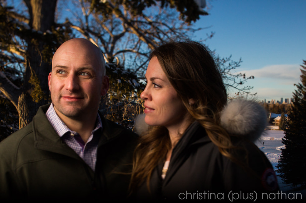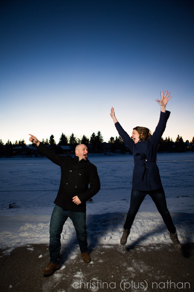 We spent a lovely and cozy afternoon with Melanie and Tyson for their Lake Bonavista winter engagement. They are getting married at The Lake House restaurant in March. Figure skating and hockey were important to these two, so we wanted to get some ice time before it melts. And, these two know their way around a rink on their edges, that’s for sure. And, even though I saw Melanie’s Leafs sweater peeking out from their bag, love conquered all, and she presented a united front, wearing a jersey from (Tyson’s also beloved, and storied) Oilers. 🙂